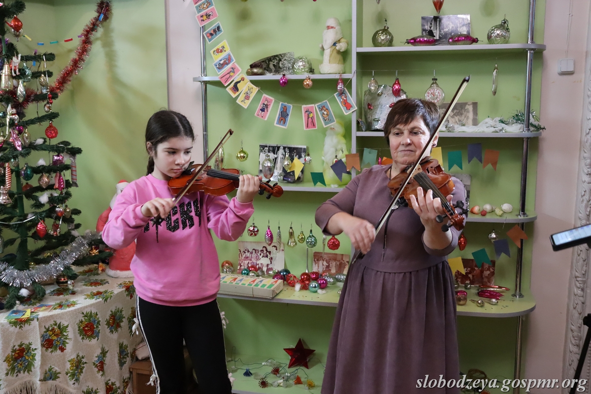 Учащиеся Детской музыкальной школы исполнили колядку на молдавском языке, а преподаватель Ольга Олейник вместе со своей ученицей Ульяной Табак – несколько тематических произведений на скрипке.