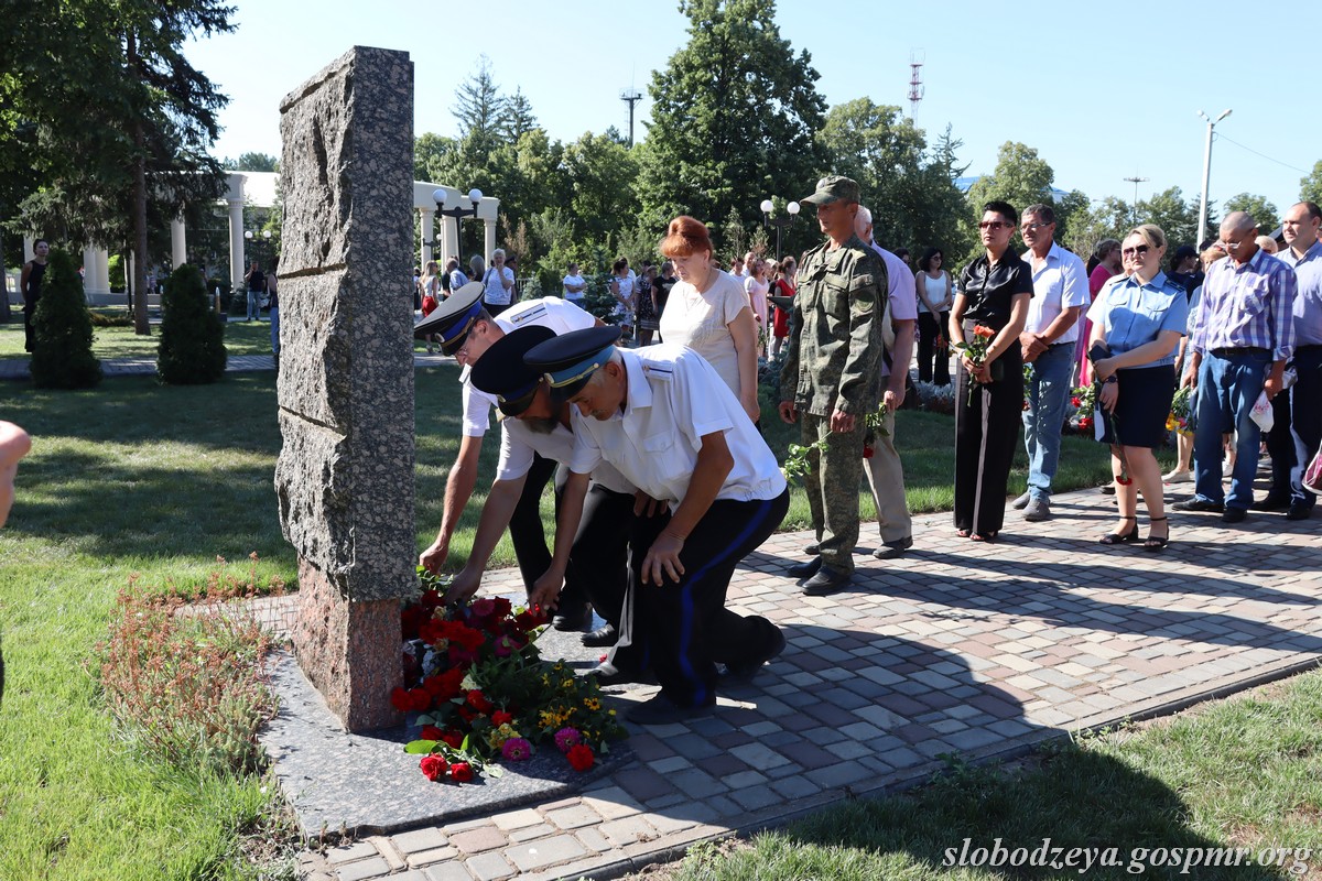 К памятникам погибшим защитникам Приднестровья и начальнику штаба Народного ополчения Слободзейского района Александру Гусару, мемориальной доске председателю Слободзейского райсполкома и районного Совета народных депутатов Николаю Остапенко были возложены живые цветы.